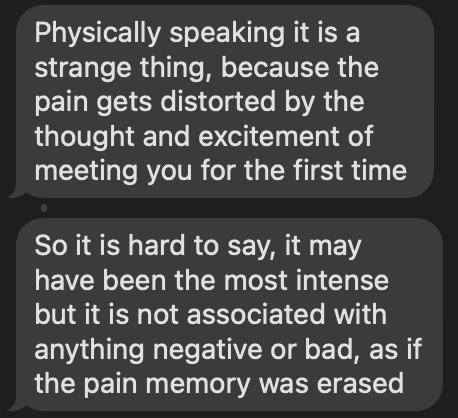 Maybe our brains just aren’t made to store the visceral memory of pain for very long. Just the emotional memory of pain. If we feel the pain is justified (the emotions are not negative), than the pain seems secondary. And even there, we can play an active role in how we perceive things, because it is up to you to decide what it’s worth.